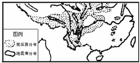 (1)从图中可以看出,我国西南地区是地震和泥石流的多发地区,在川、滇、黔交界地带形成了地震、滑坡、泥石流为主的灾害系统。这是因为 。