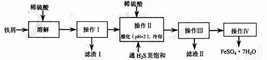 绿矾(FeSO4·7H2O)是治疗缺铁性贫血的特效药。下面是以商品级纯度铁屑(含少量锡等杂质)生产绿矾的一种方法: