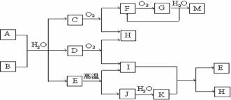 (12分)已知A为酸式盐,B为某二价主族金属元素的化合物,常温常压下C、D、F、G、I均呈气态。等物质的量A、B与少量的水充分混合能恰好完全反应。图中反应条件(除高温外)均已略去。