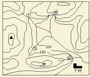 1.B.[解析]④地陡崖位于山脊,不能形成瀑布,A错;河流发育于山谷中,①处河流源头位置错误,④处为山脊,B正确;丁村位于大坝下游方向,水库蓄水无法淹没丁村,C错;甲与大坝之间等高线疏密分布为“高疏低密”,站在甲处难以看到大坝全貌,D错。