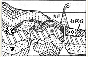 5.D。[解析]②处为侵入岩,④处原为石灰岩,后受一侧岩浆的高温高压影响变质为大理岩。