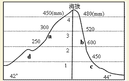 9.D。[解析]水土流失不属于气象灾害;雪灾主要发生在冬季,对冬小麦生长有一定的积极影响。春旱影响小麦返青,干热风影响小麦灌浆和成熟。 读新疆某山地沿经线的地形剖面图及对应的年均降水量资料,回答10-11题: