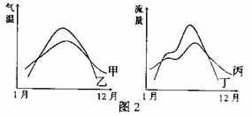 图2为“人类活动破坏前后,东北三江湿地气温年变化及其区域内某河流流量年变化示意图”。读图,回答6-7题。