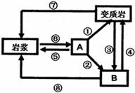 C.⑤⑦⑧是重熔再生作用 D.主要有外力作用参与的环节是②③