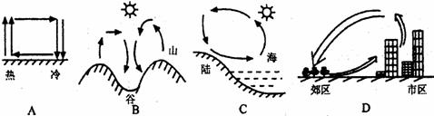 5.在下列四幅热力环流图中,其中不正确的是( )
