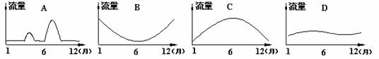 下列河流的流量过程曲线属于地中海沿岸地区的是( )