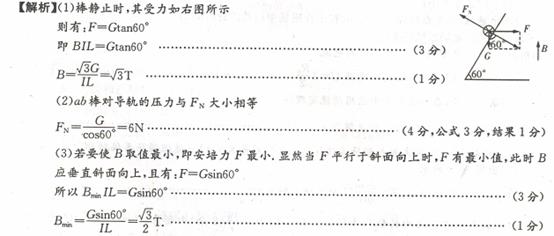 ∴B=0.4 T,方向垂直导轨平面向上 (2分)