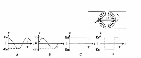 (郴州市)5.如图所示为一台发电机的结构示意图,其中N、S 是永久磁铁的两个磁极,它们的表面呈半圆柱面形状。M 是圆柱形铁芯,它与磁极的柱面共轴,铁芯上有一矩形线框,可绕与铁芯M 共轴的固定转轴旋转。磁极与铁芯之间的缝隙中形成方向沿半径、大小近似均匀的磁场。若从图示位置开始计时,当线框