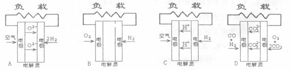 10.有四种燃料电池,A.固体氧化物燃料电池B.碱性氢氧化物燃料电池C.质子交换膜燃料电池D.熔融盐燃料电池,下面是工作原理示意图,其中正极反应生成水的是
