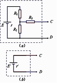 (3)图(a)中虚线框内的电路可等效为一个电源,即图(a)可等效为图(b),其等效电动势E′等于CD间未接入用电器时CD间的电压;若用导线直接将CD两点连接起来,通过该导线的电流等于等效电源的短路电流。则等效电源的内电阻r′是多少?