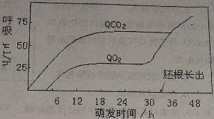21.某研究性学习小组研究哈密瓜果实种子萌发时的代谢,得到如下曲线图,(QCO2表示CO2释放量,QO2表示O2吸收量)。相关的叙述中不正确的是