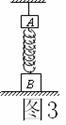 在图3中有两个物体A、B,GA=3N,GB=4N,A用悬线挂在天花板上,B放在水平地面上,A、B间的弹簧的弹力为2N,则悬线的拉力T,B对地面的压力FN的可能值分别是( )