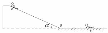 26.(15分)滑沙运动起源于非洲,是一种独特的体育游乐项目,现在我国许多地方相继建立了滑沙场,滑沙已成为我国很受欢迎的旅游项目。如图所示,运动员从A点沿斜坡由静止开始下滑,经过B点后进入水平面(设经过B点前后速度大小不变),最后停在C点。若运动员与滑沙板的总质量为60Kg,滑沙板与沙子间的动摩擦因数m恒为0.5,坡面AB的长度为100m,坡面的倾角a=37(sin370=0.6,cos370=0.8)。