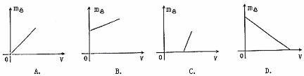 2、 在测定液体密度的实验中,液体的体积(V)及液体和容器的总质量(m总)可分别由量筒和天平测得,某同学通过改变液体的体积得到几组数据,画出有关的图线,下图中能正确反映液体和容器的总质量跟液体的体积关系的是( )