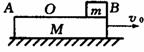 [例5]如图所示,质量为M长为L的木板(端点为A、B,中点为O)置于光滑水平面上,现使木板M以v0的水平初速度向右运动,同时把质量为m长度可忽略的小木块置于B端(它对地初速为零),它与木板间的动摩擦因数为μ,问v0在什么范围内才能使小木块m滑动到OA之间停下来(即相对木板静止)?