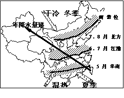 中国降水量的时空分布规律及形成原因如图所示。