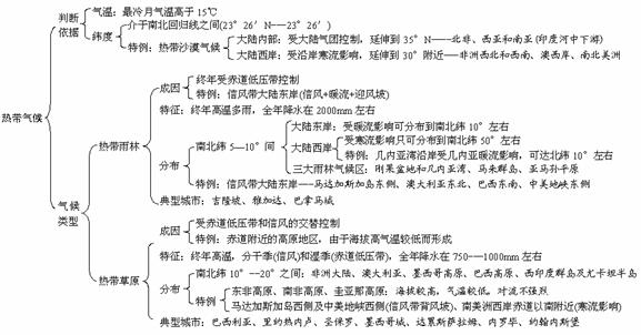热带雨林气候 热带草原气候 热带沙漠气候 热带季风气候 |