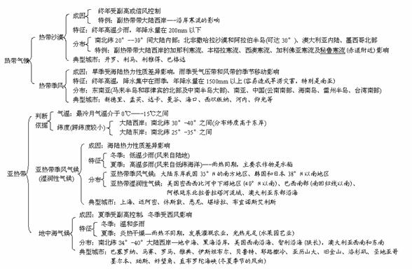 亚热带季风气候和季风性湿润气候 地中海气候 |
