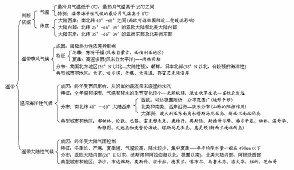 注:温带海洋性气候最冷月气温>00C,气温变化特点为冬温夏凉