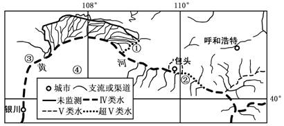 读黄河干支流部分河段水质状况分布图,判断4~6题。