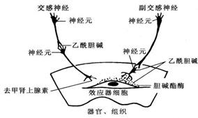 (3)A和B的遗传物质相同,释放的物质不同,这体现了_______________________。效应器细胞识别乙酰胆碱后细胞收缩,乙酰胆碱被胆碱酯酶分解,细胞恢复舒张。去甲肾上腺素________(填能或不能)被胆碱酯酶分解,这体现了_________________。