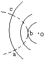 一带电粒子射入一固定在O点的点电荷的电场中,粒子运动的轨迹如图所示,图中实线是同心圆弧,表示电场的等势面,不计重力,可以判断: