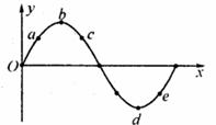 一列简谐横波沿T轴传播,某时刻的波形如图所示。关于该波的传播方向与质点以a、b、c、d、e的运动情况,下列叙述正确的是