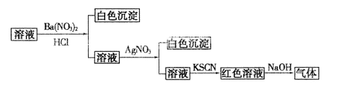 为检验某溶液中的离子,进行了如下图所示的实验操作,过程中产生的气体能使湿润的红色石蕊试纸变蓝。由该实验能得到的正确结论是