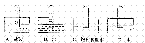 3.四支试管分别充满O2、NO2、C12、NH3四种气体,把它们分别倒立于盛有下列各种液体水槽中,发生的现象如下图所示,其中充满C12的试管是( )