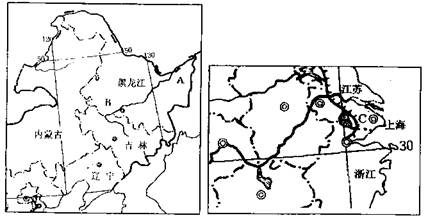 27.读我国东北地区和长江三角洲两区域示意图及相关材料,回答问题(11分)