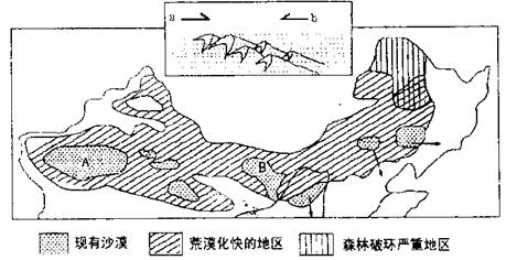 (3)土地荒漠化正在呈现向东、向南扩展的趋势,其主要原因是什么?(4分)