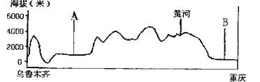 材料三:乌鲁木齐至重庆的地形剖面示意图。