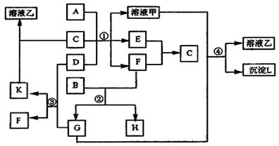 22.(6分)下图表示有关物质(均由短周期元素形成)之间的转化关系,其中A为常见的金属单质,B为非金属单质(一般是黑色粉末),C是常见的无色无味液体,D是淡黄色的固体化合物,反应②中n(B):n(F)=2:3。(反应条件图中已省略。)