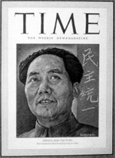 在西方世界日益关注中国的过程中,《时代》周刊是最典型的代表。右边这幅图是1949年毛泽东成为《时代》周刊封面人物的图片,毛泽东当时能够