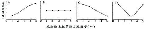 端的胚芽鞘切面一侧,经暗培养后,测定胚芽鞘弯曲
