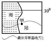 13.若在甲处有一天然港湾,则该港湾的气候特点是