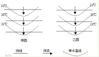 A. 甲图为秘鲁寒流 B. 乙图为东澳大利亚暖流