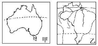 A.植被茂密,降水丰富 B. 甲处纬度偏高,降水相对较多