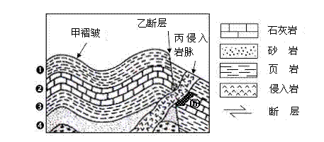 下图为某处地层未曾倒置的地质剖面图。据此回答24-25题。