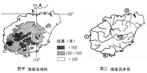 27.(7分)读图甲和乙海南岛地形和水系图,联系学过的知识,回答下列问题: