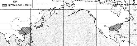 (3)在夏秋季节,危害甲、丙两地区的严重气象灾害分别是 、飓风,它们在成因上相同,都是__________ _____造成的。