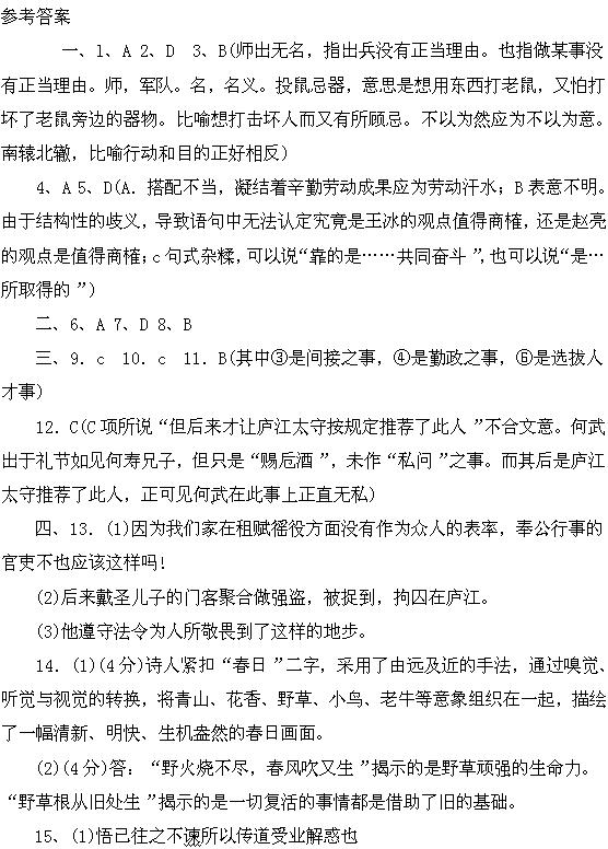 22.评分参考:(1)答案要紧密联系原文作答,不能信马由缰。
