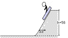13.(10分)南戴河旅游区,有一项滑沙游戏,滑沙场是在水平沙滩上筑起了一个大沙坡,如图所示。游戏开始,滑沙者在坡顶处坐在一个平板滑沙车上,然后由工作人员推动一下,使滑沙者乘坐平板车沿坡滑下。设斜坡高度为56 m,倾角为53°,滑沙车与沙之间的动摩擦因数为0.4,滑沙者起动时初速度很小可忽略不计,重力加速度g取10 m/s2,其中sin53°=0.8,cos53°=0.6。求:滑沙者在滑沙过程中的运动时间。