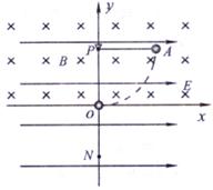 内存在水平向右的匀强电场,场强大小E=10N/c,在y≥0的区域内还存在垂直于坐标平面向里的匀强磁场,磁感应强度大小B=0.5T一带电量