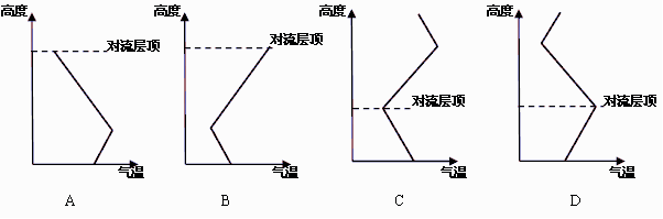 67.2008年初的雪灾与大气的逆温现象有关。逆温是指对流层中气温随高度上升而增高的现象。下列四图中表示近地面逆温现象的是( )