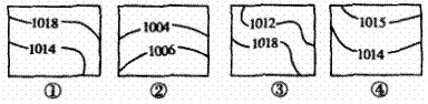 72.下图所示的四幅比例尺相同的等压线分布图中,按风力大小排序正确的是( )