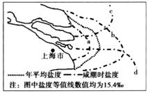 咸潮,又称咸潮上溯、盐水入侵,内河含盐量超过一定标准,水体变咸即形成咸潮,近年来某些河口三角洲地区由于咸潮问题凸显,受到广泛关注。2010年,上海将举办举世瞩目的世博会,“城市,让生活更美好”的主题已深入人心。然而,目前上海的城市供水现状却令人担忧:夏季的用水高峰和冬春咸潮造成全市供水趋紧。而近年,上海先后经受了近10次咸潮侵袭,影响程度为历年之最。据此并结合图4回答9-11题。
