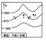 A. d点地势高,自转线速度大 B. c点地势低,自转线速度大