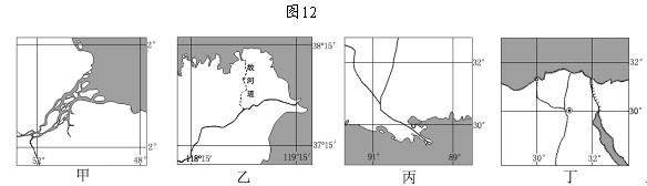 图12中为甲、乙、丙、丁四条河流干流分布示意图,据图回答21-22题。