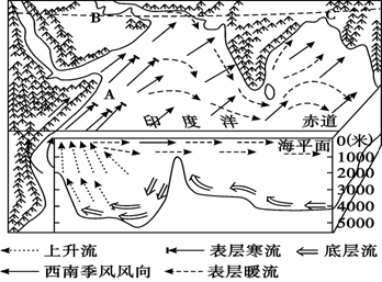 36、读右下图“印度洋西北部海域上升流的形成示意图”,回答:(8分)